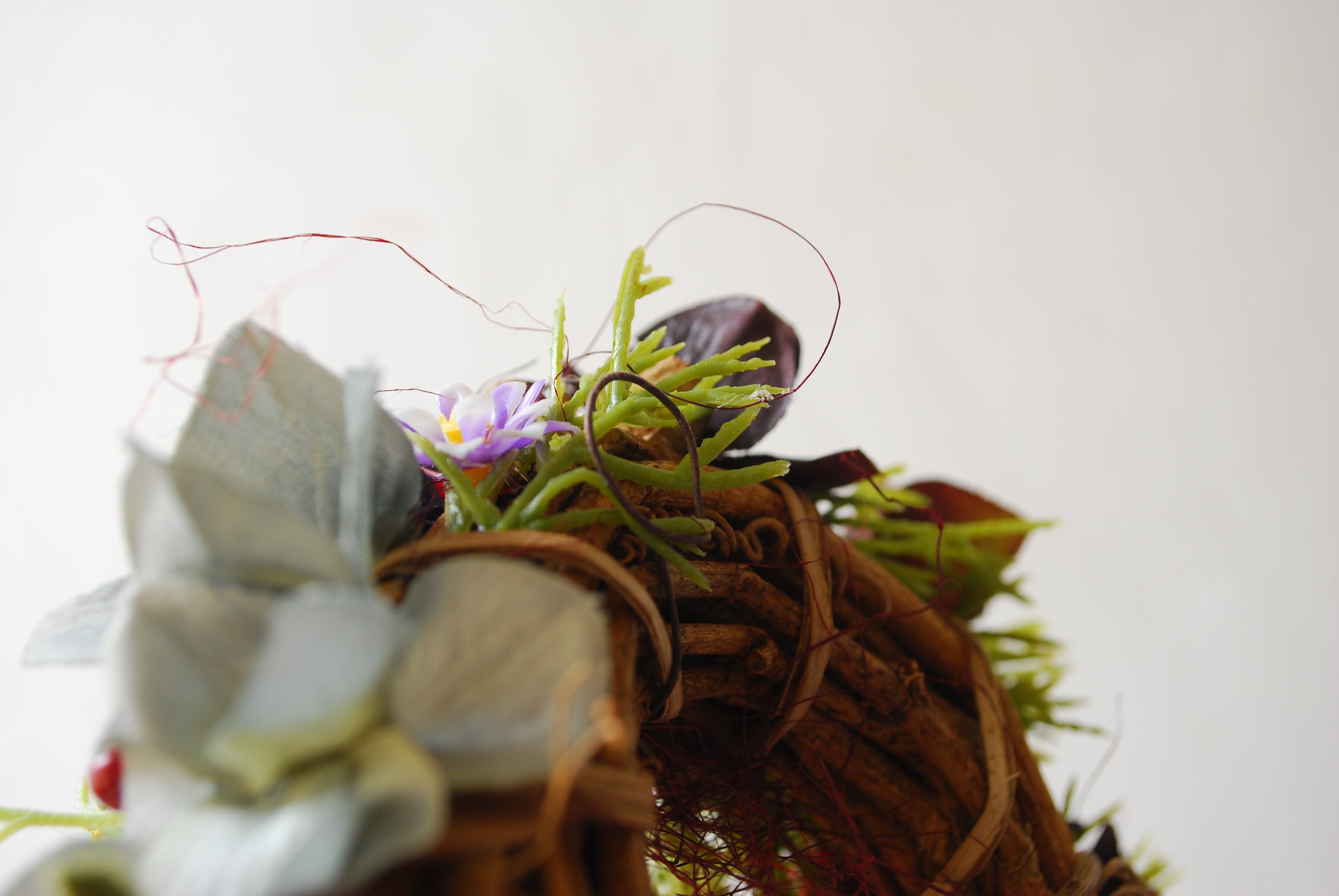 自然の蔓に造花を重ねた小さなリース