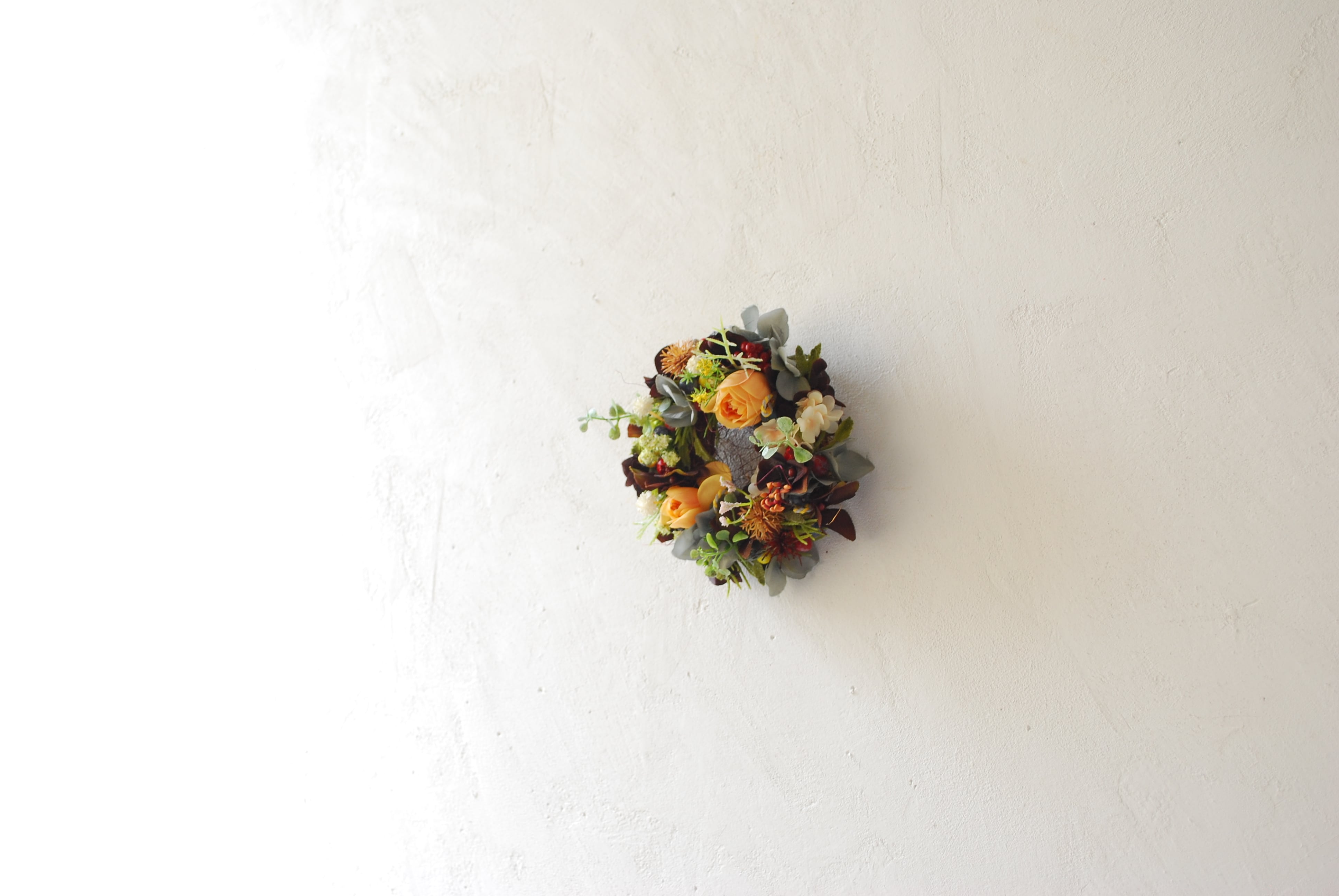 ちいさなリースは壁のスペースに飾りやすく