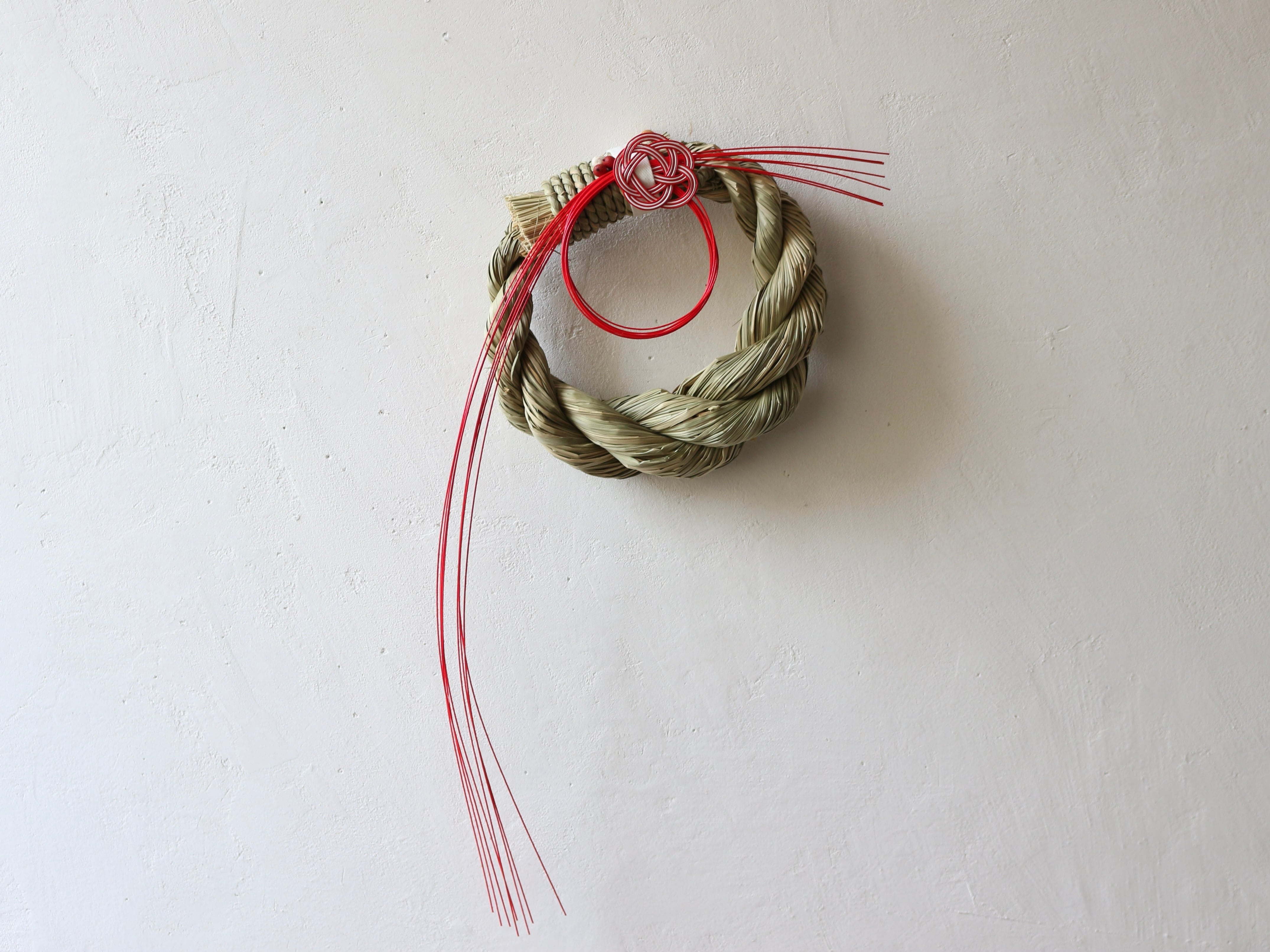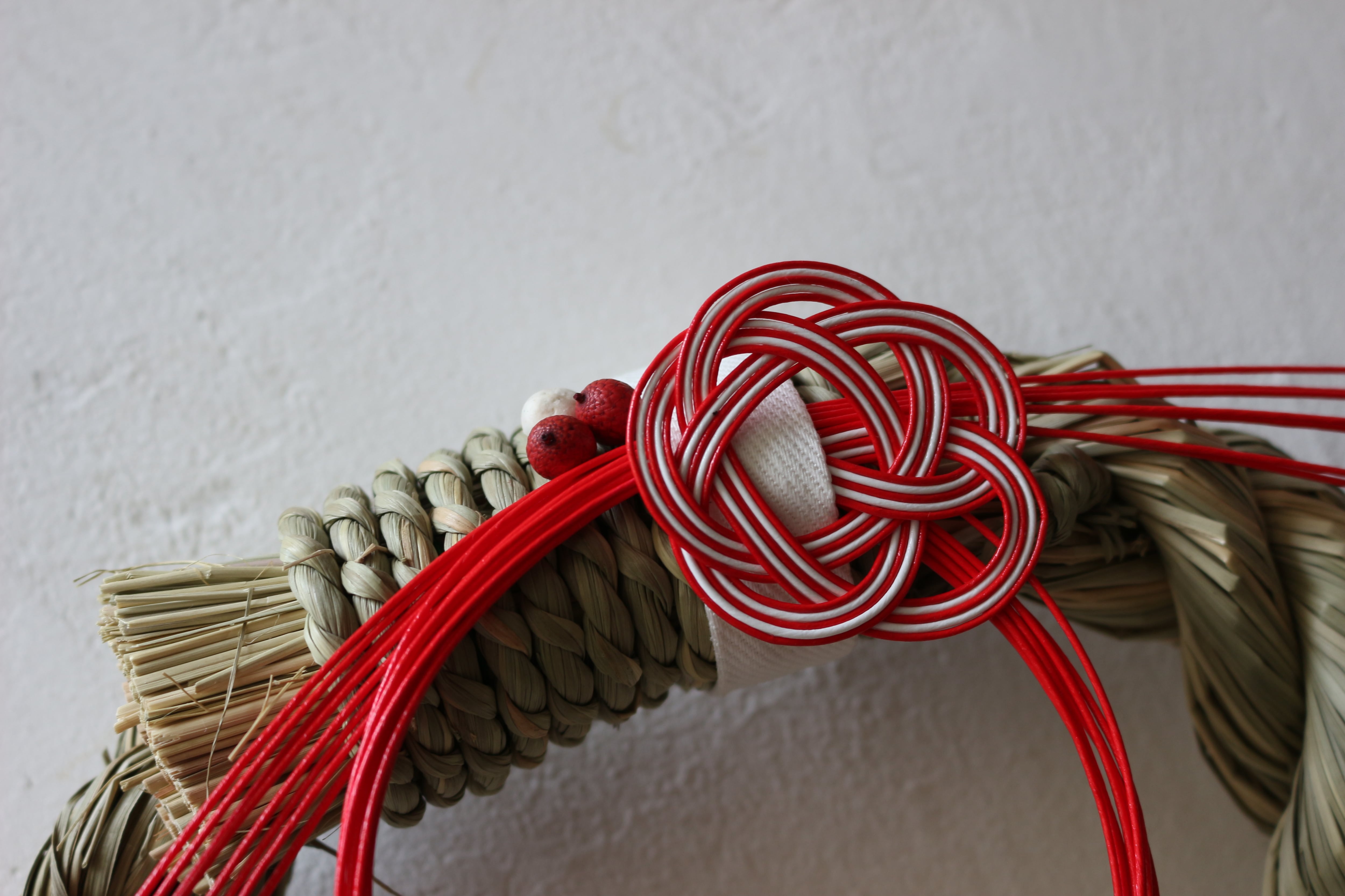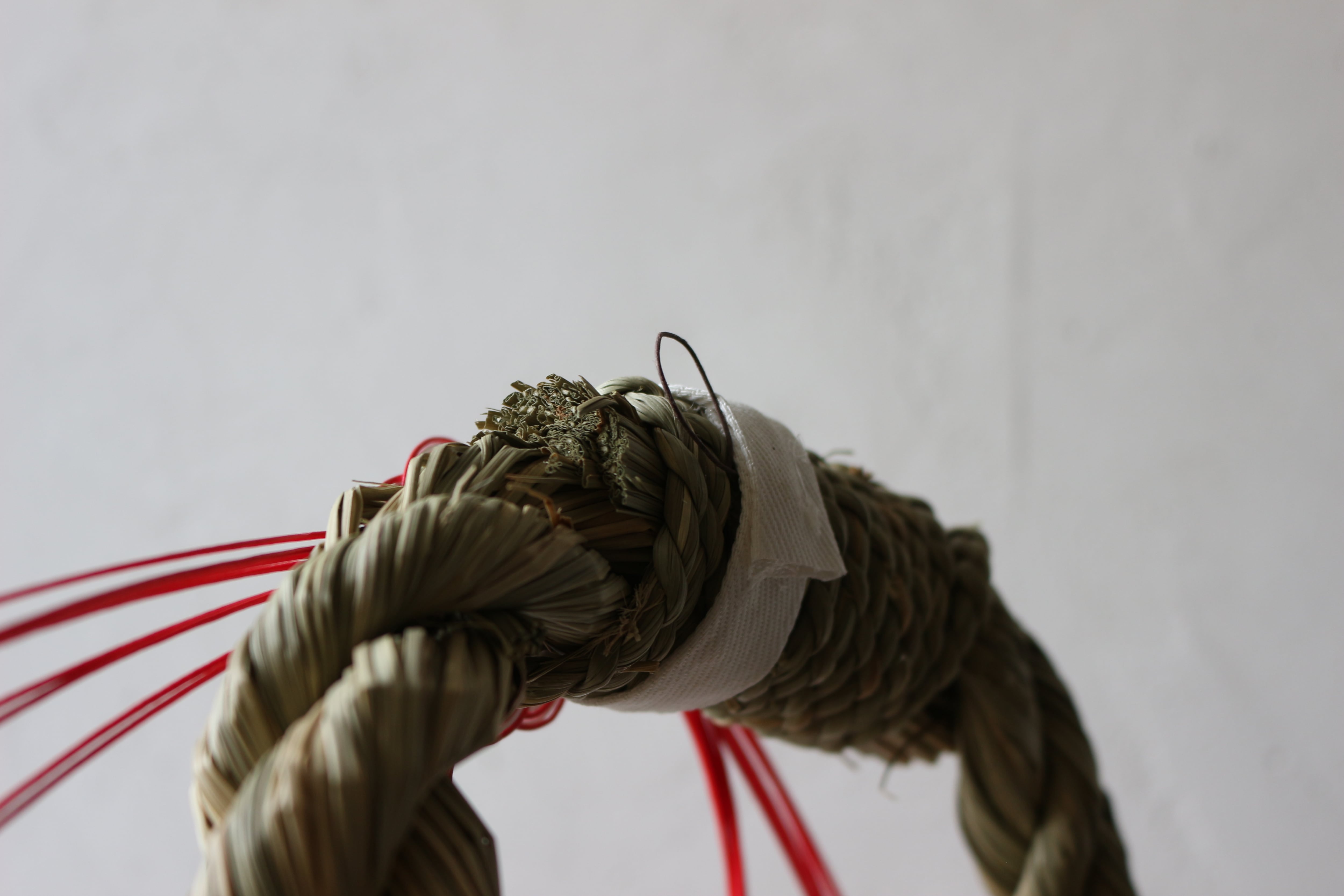 新年を迎える、ずっしりと存在感のある太縄のわら飾り