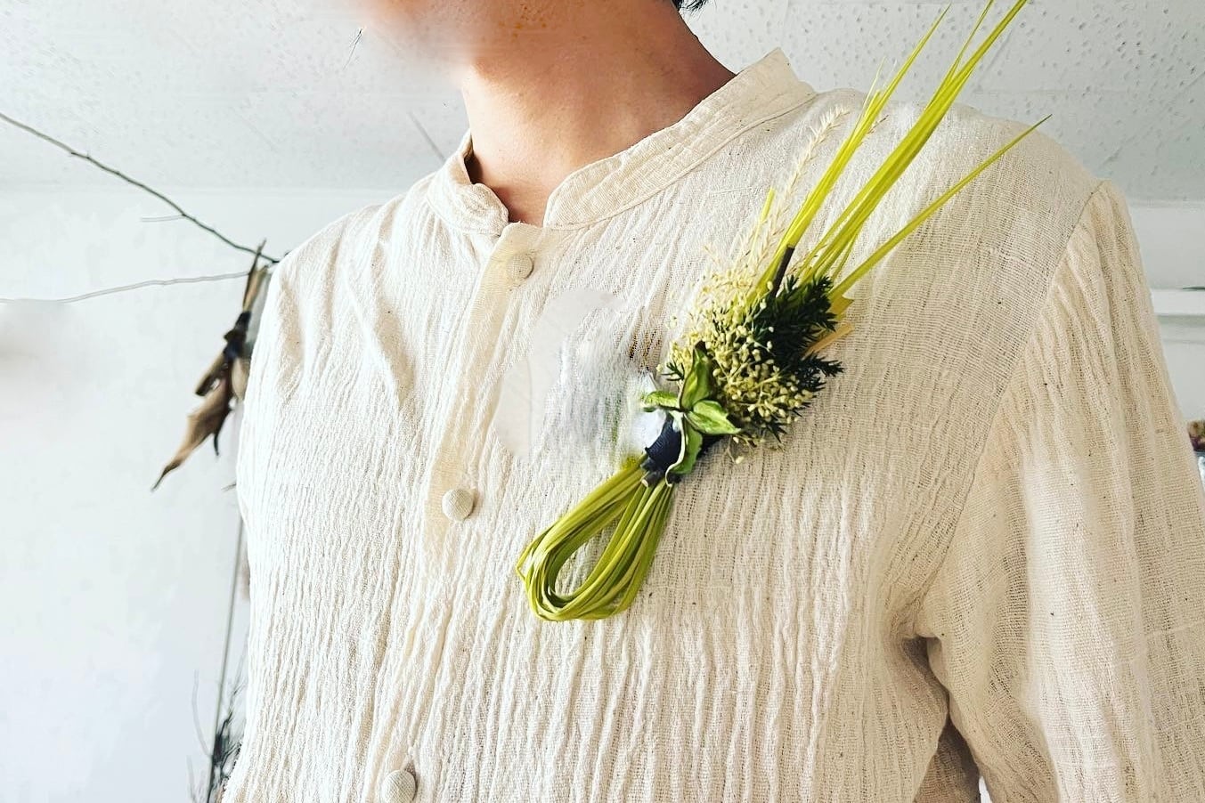 当日着るナチュラルな麻のシャツに合うように制作