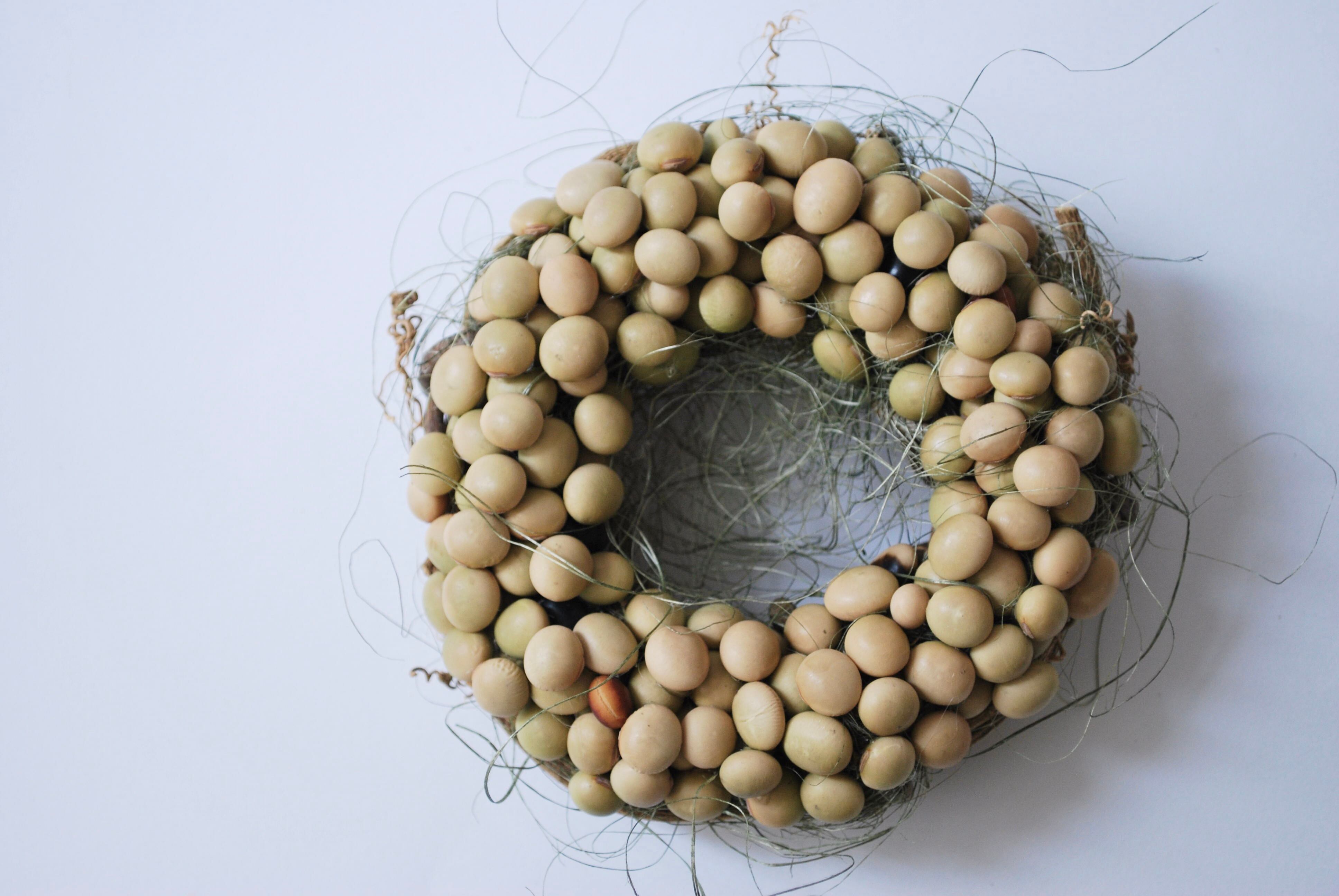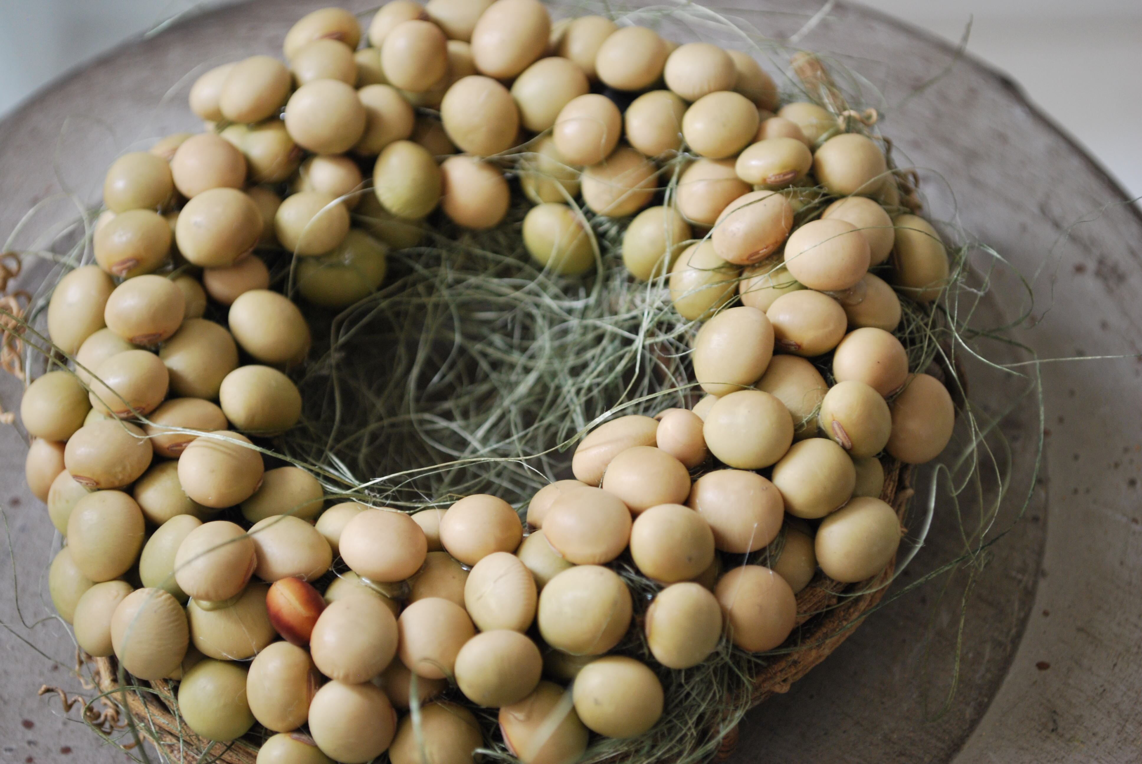 大量の秘伝豆がロスになりそう…という時に作り始めたリースです