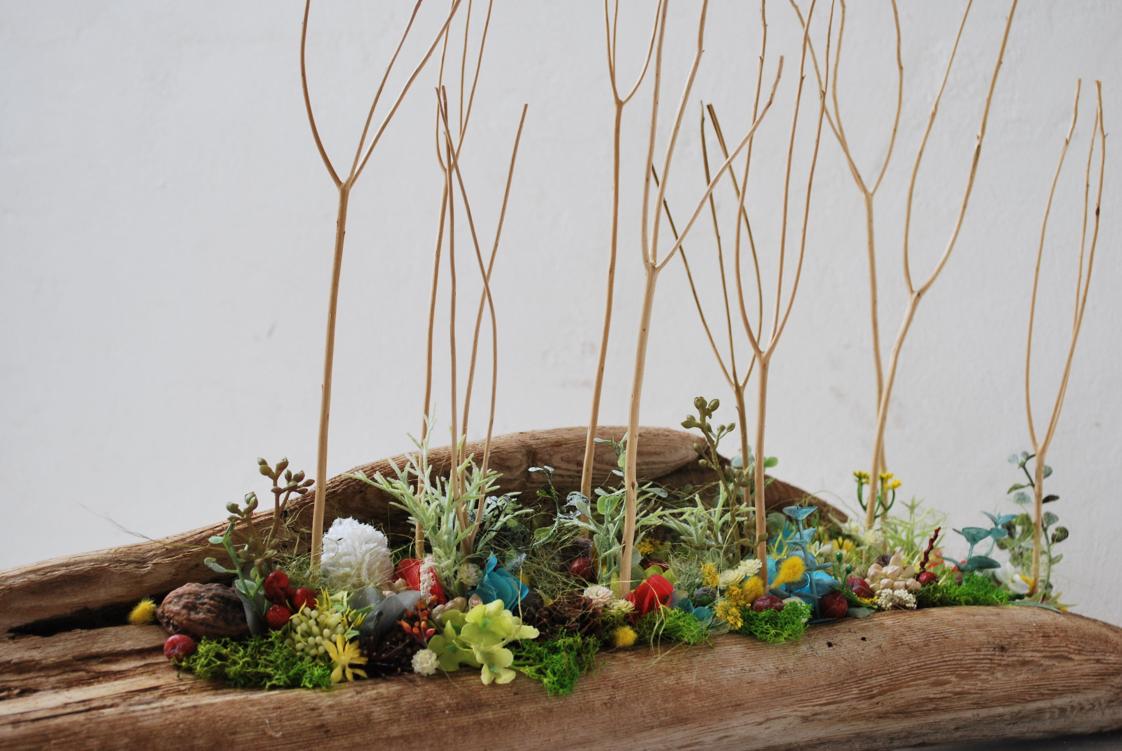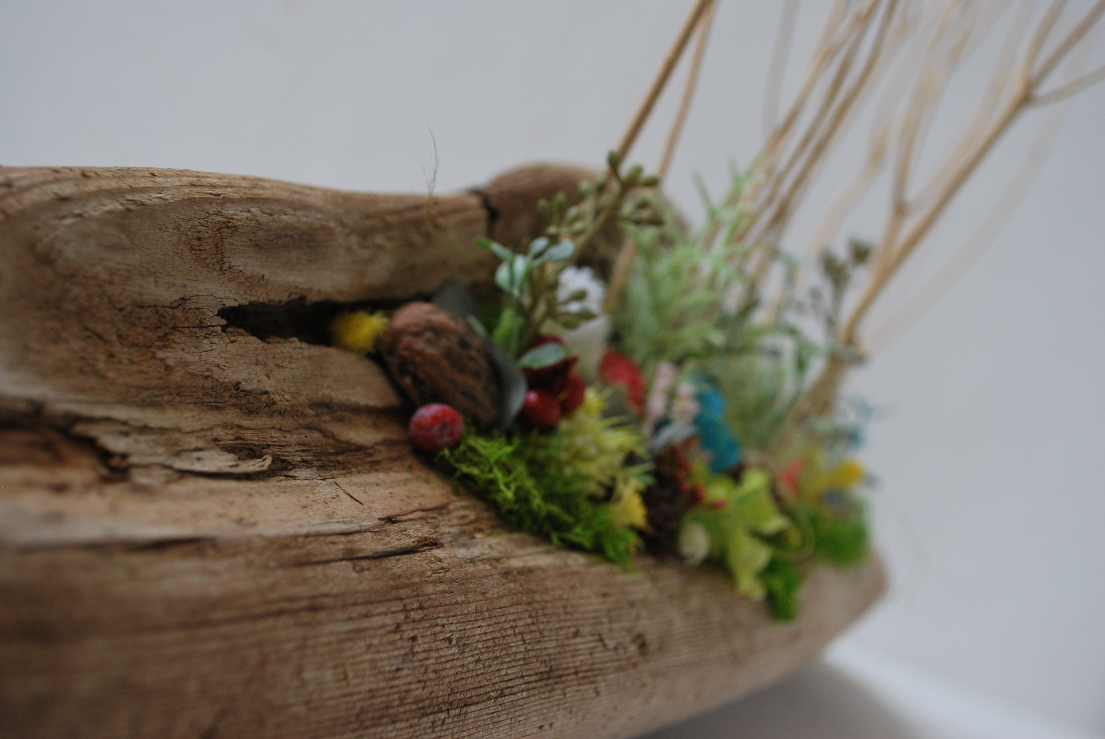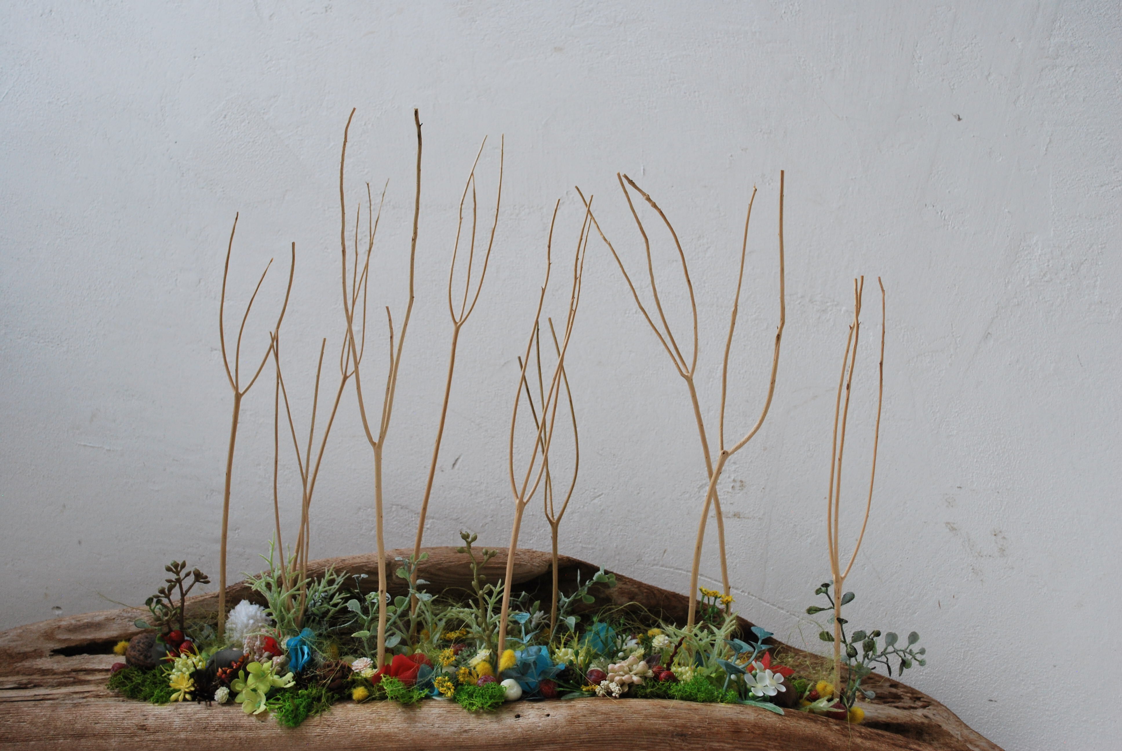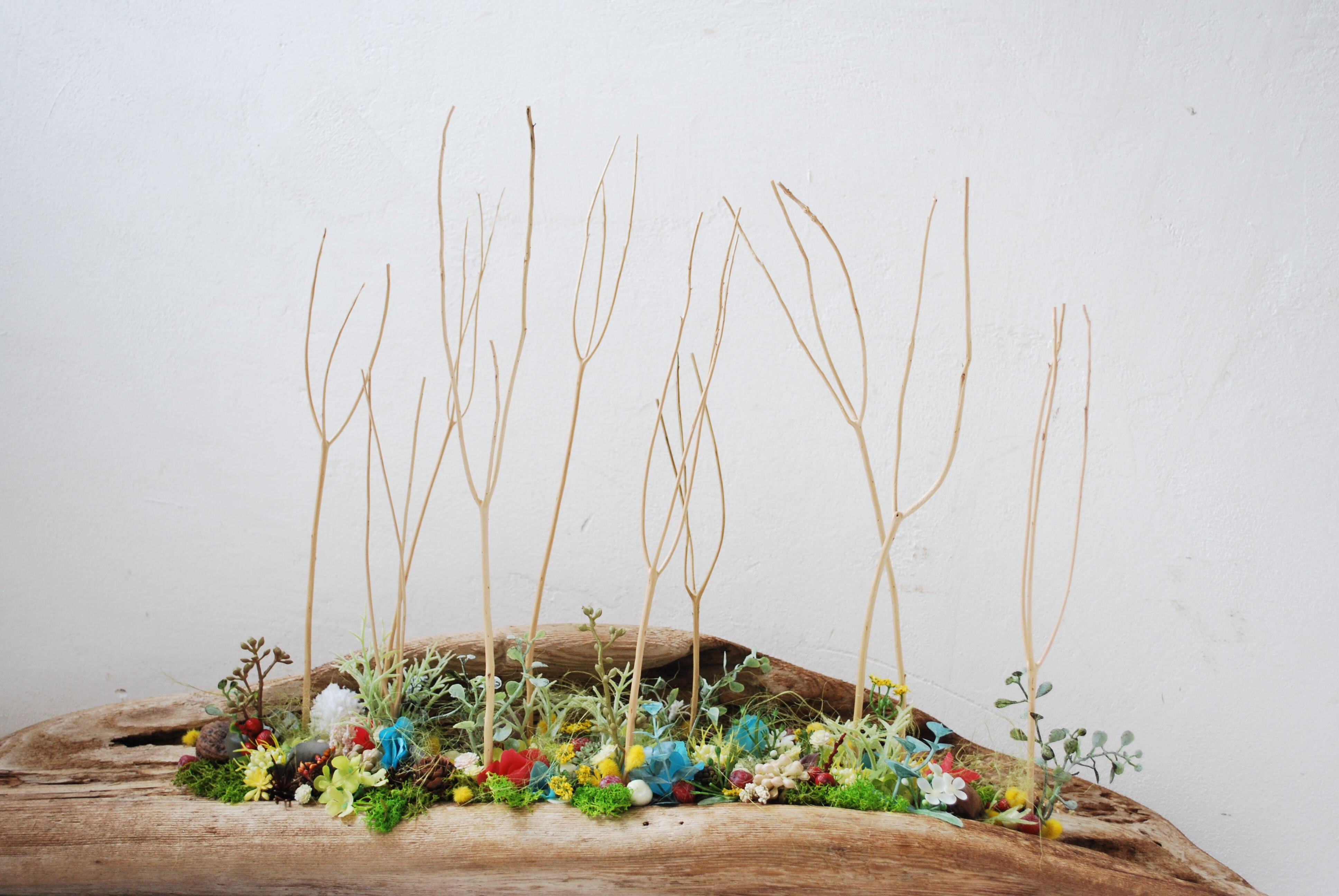 Material : アーティフィシャルフラワー , プリザーブドフラワー, 木の実,流木(自然素材)